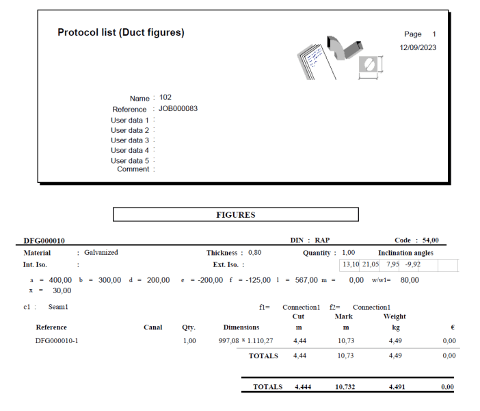 Lantek Expert Duct генерирует списки, отчеты и печать элементов: