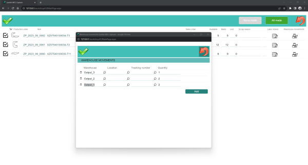 Отправляйте задания и собирайте информацию о выполненных работах, затраченном времени и количестве брака с рабочих центров и рабочих участков.