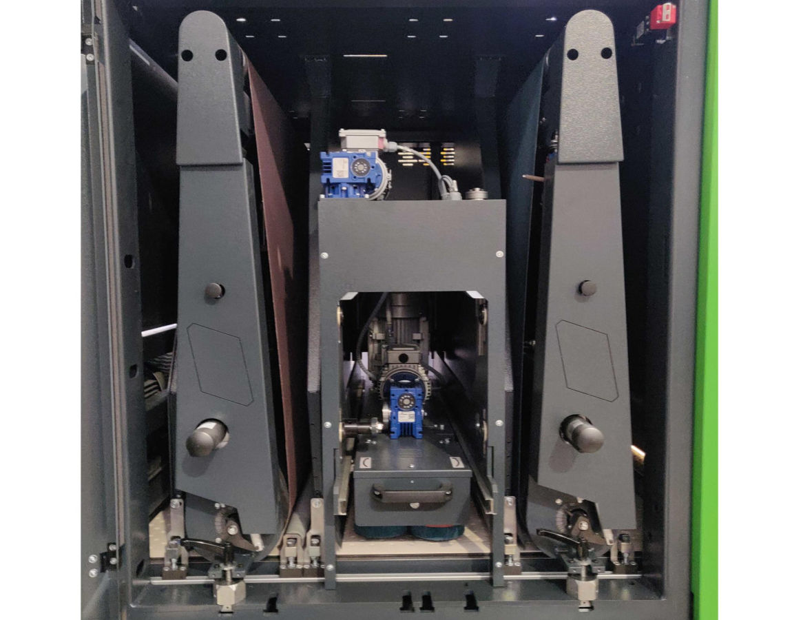 | Вакуумный вентилятор размещается снизу, внутри рамы станка, что позволяет оптимизировать эффективность вакуума и снизить уровень шума |