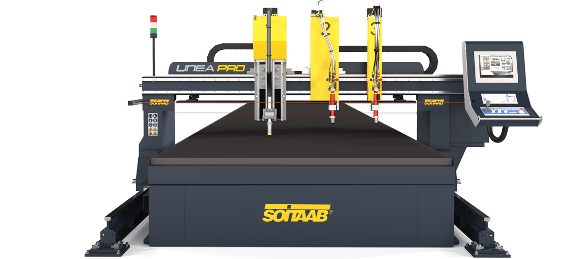 LineaTech PRO может быть оснащена до 4 газокислородными автоцистернами и тележкой с шириной плазменной резки до 3000 мм и колесной базой до 4000 мм. В газокислородной группе газораспределение имеет 3 полностью пропорциональных клапана, управляемых ЧПУ. В качестве опции база данных параметров резки делает управление газом полностью автоматическим и контролируемым ЧПУ. В плазме, в дополнение к традиционным системам резки, LineaTech PRO имеет особенности конструкции и механики, подходящие для применения самых сложных систем резки высокой четкости с оптимальным управлением параметрами для достижения оптимального результата даже по силуэтам. сложной обработки и отверстий малого диаметра. Кроме того, если доступна опция автоматической газовой консоли, CNC II может быть дополнен базой данных для параметров автоматической резки, что сделает этот станок с его экономичностью высокопроизводительным. ЧПУ ЧПУ SOITAAB II с интерактивным меню и цветным сенсорным экраном имеет библиотеку из 30 фиксированных параметров и в качестве опции может быть расширена до 78 цифр.
