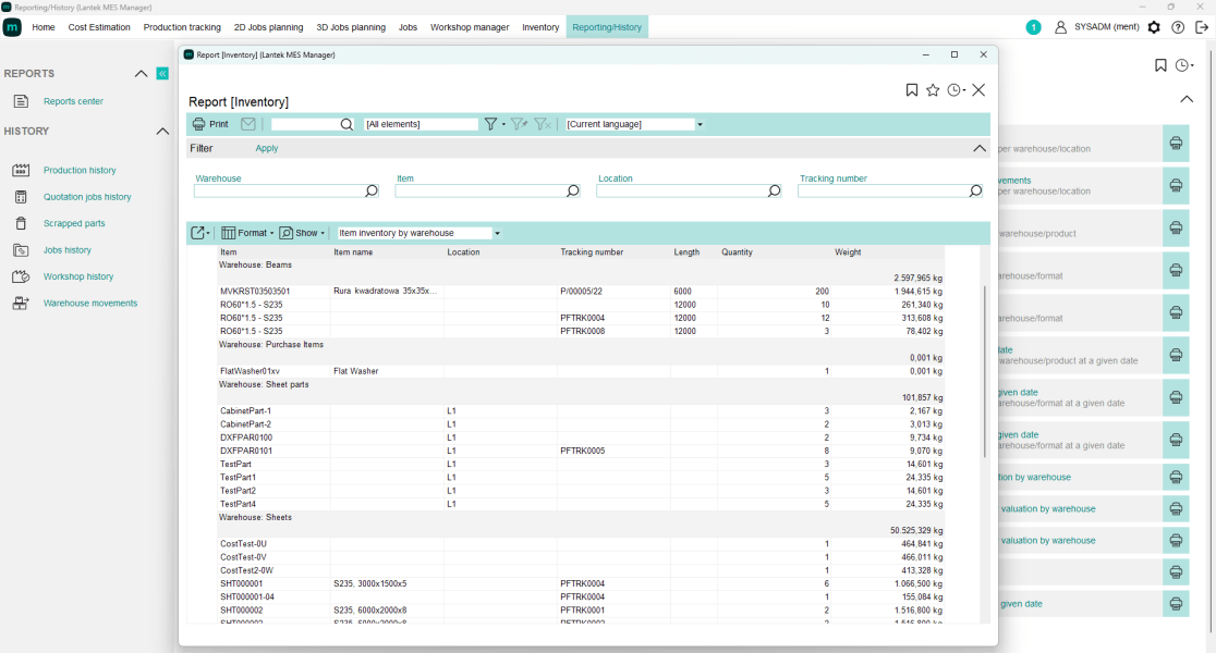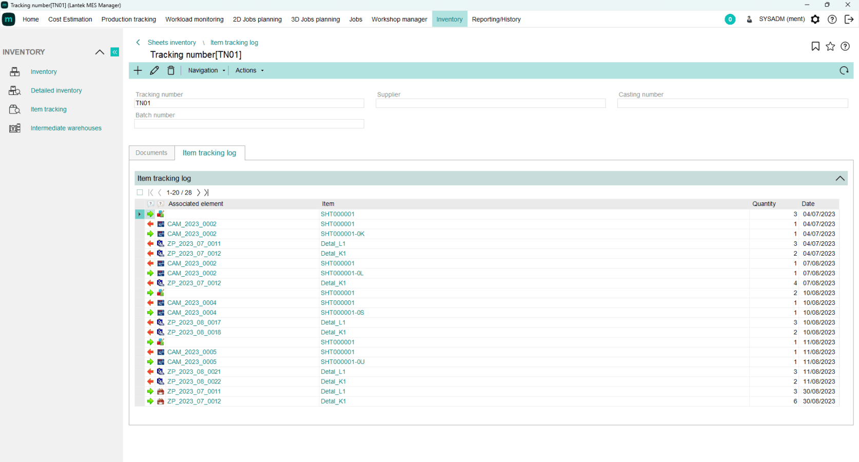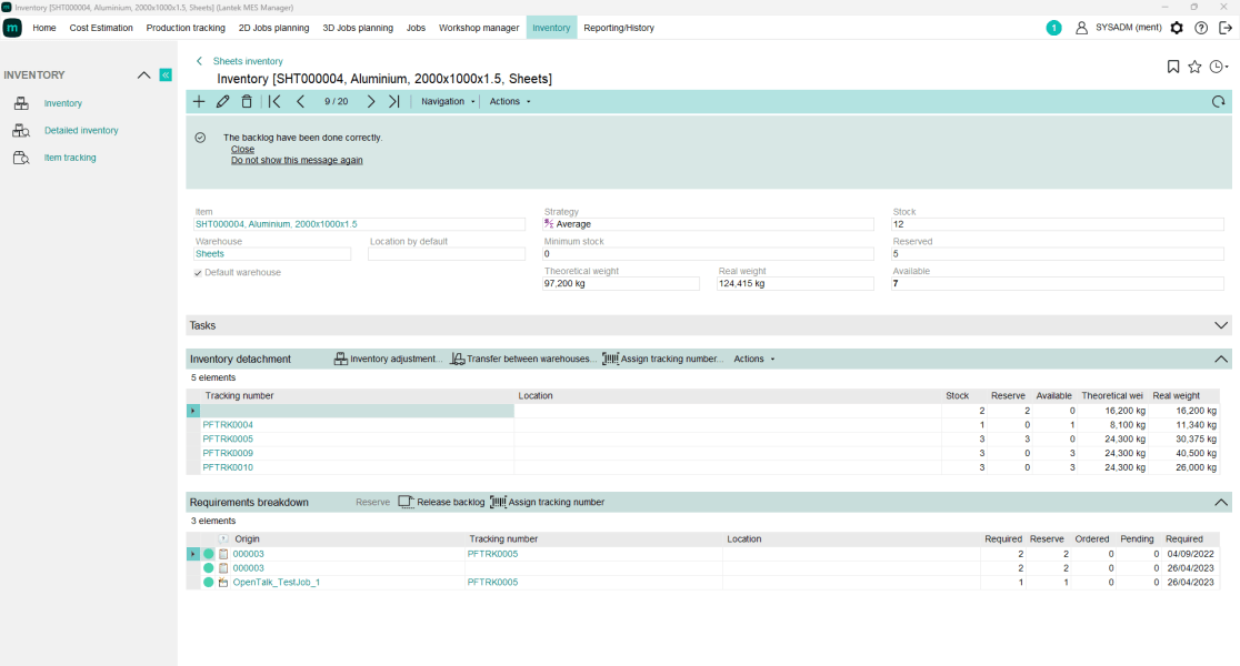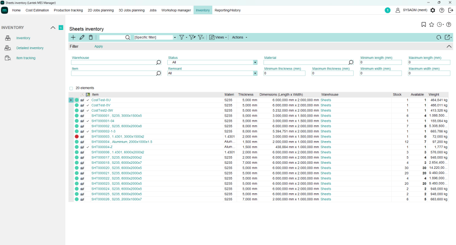 Lantek MES Inventory