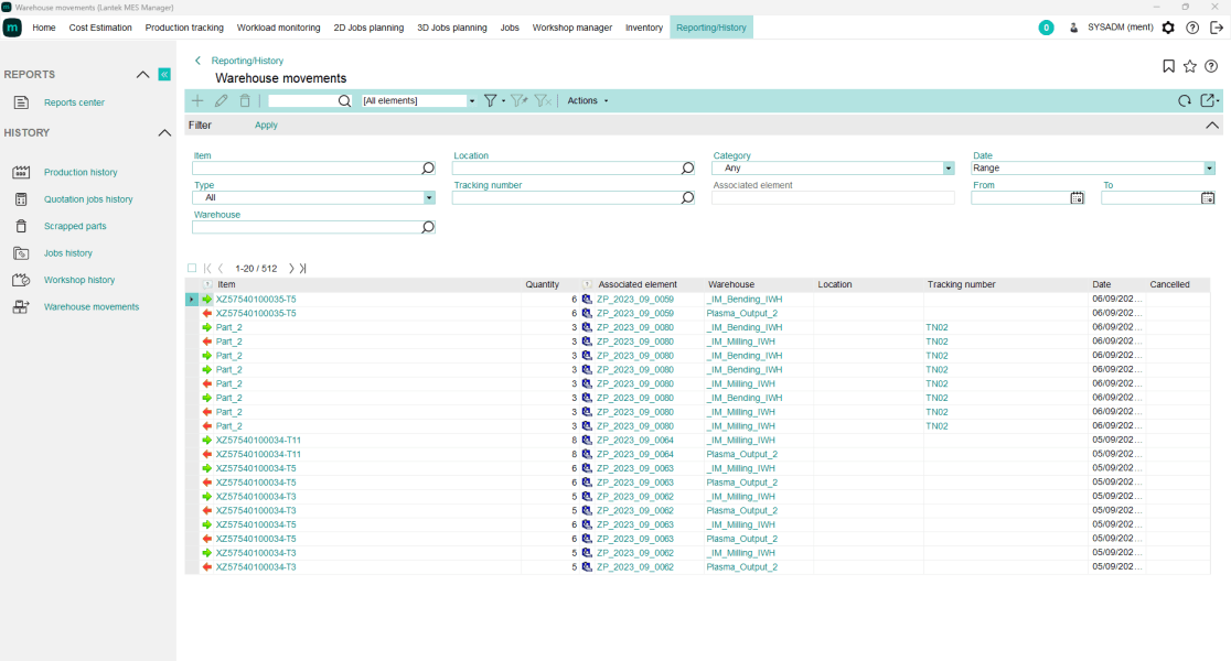 Lantek MES Inventory можно использовать в качестве мощного инструмента анализа, поскольку он предоставляет менеджеру инвентаризации следующую информацию: историю движения склада, инвентаризации, выполненные между конкретными датами, сгенерированные поступления и документация, экономическая оценка запаса и многое другое. Используя фильтры, можно легко и быстро получить доступ к различным классификациям счетов-фактур.